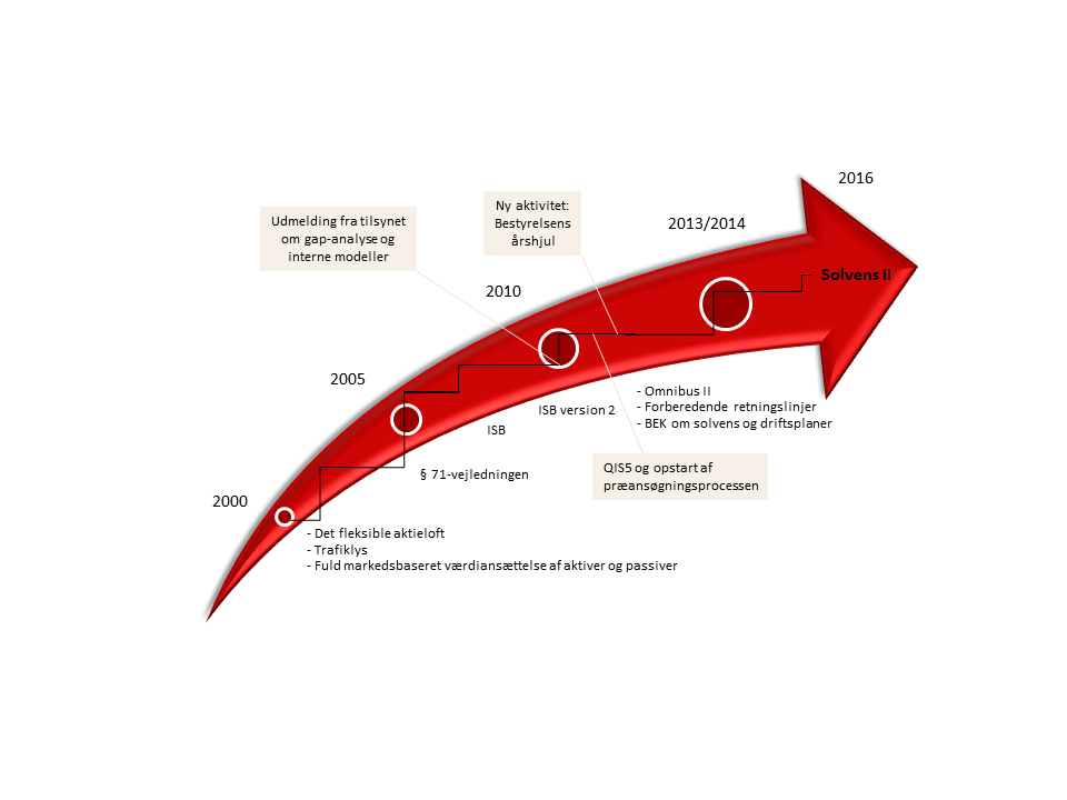 Med det formål at øge Solvens II paratheden i den finansielle sektor har Finanstilsynet gennem årene gennemført flere tiltag der har øget aktiviteten og dialogen om Solvens II.