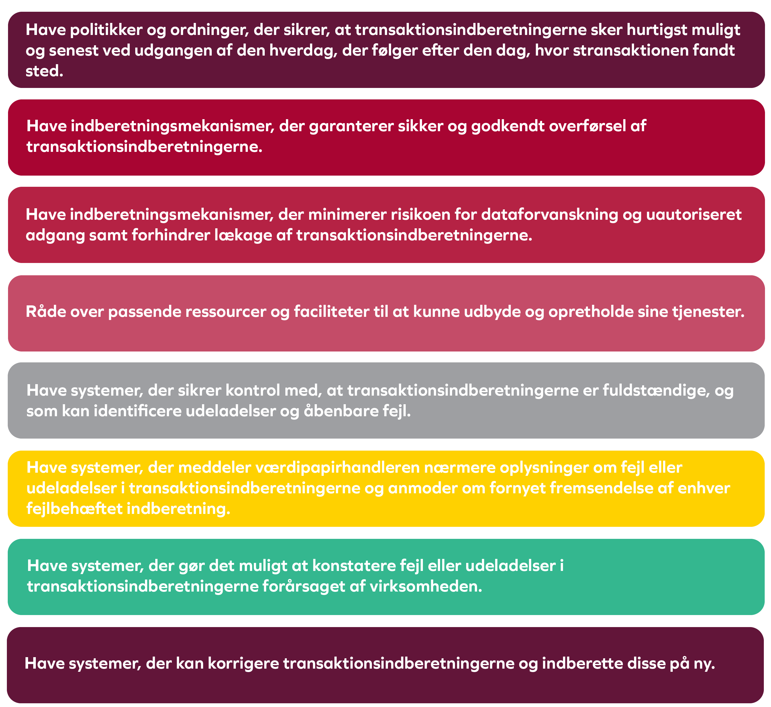 Virksomhed som godkendt indberetningsmekanisme (ARM) består i at indberette fuldstændige og nøjagtige oplysninger om transaktioner (herefter transaktionsindberetningerne) til Finanstilsynet, jf. artikel 26 i MiFIR .