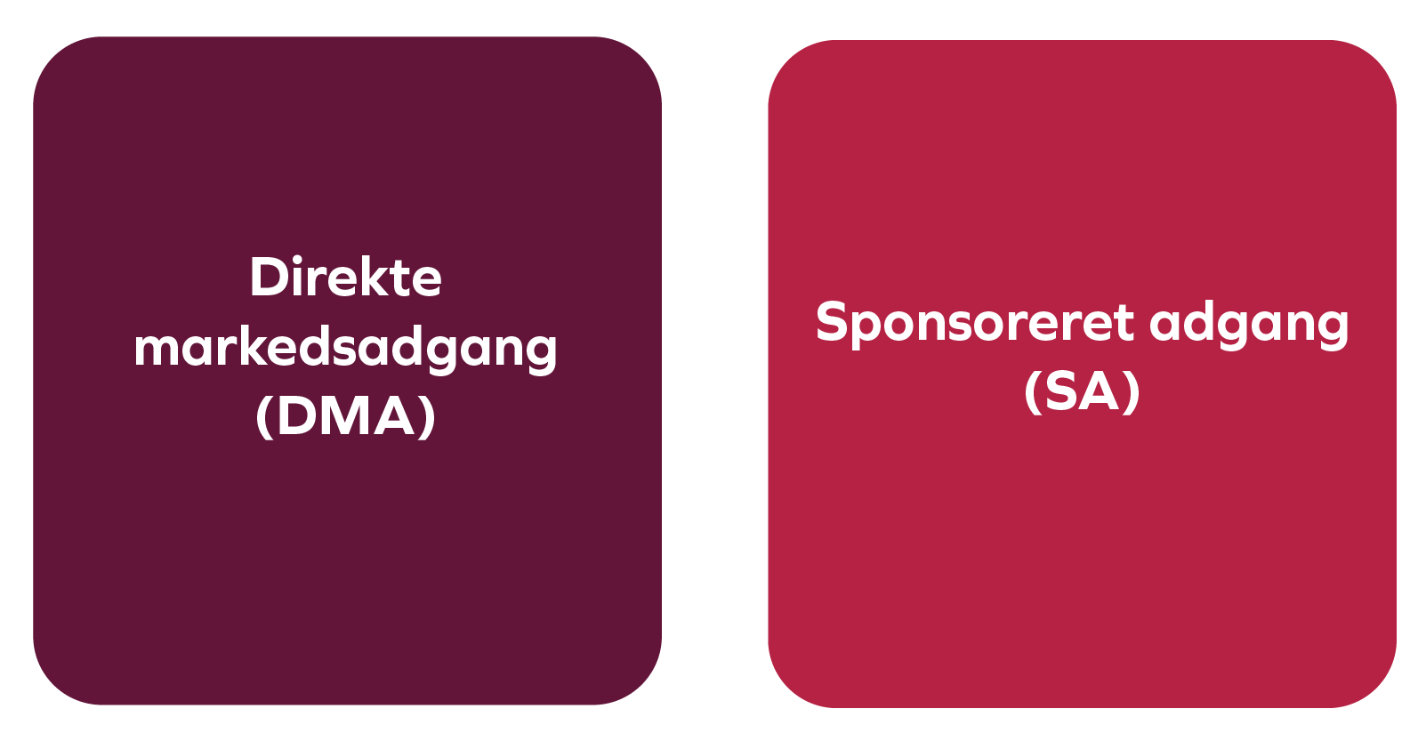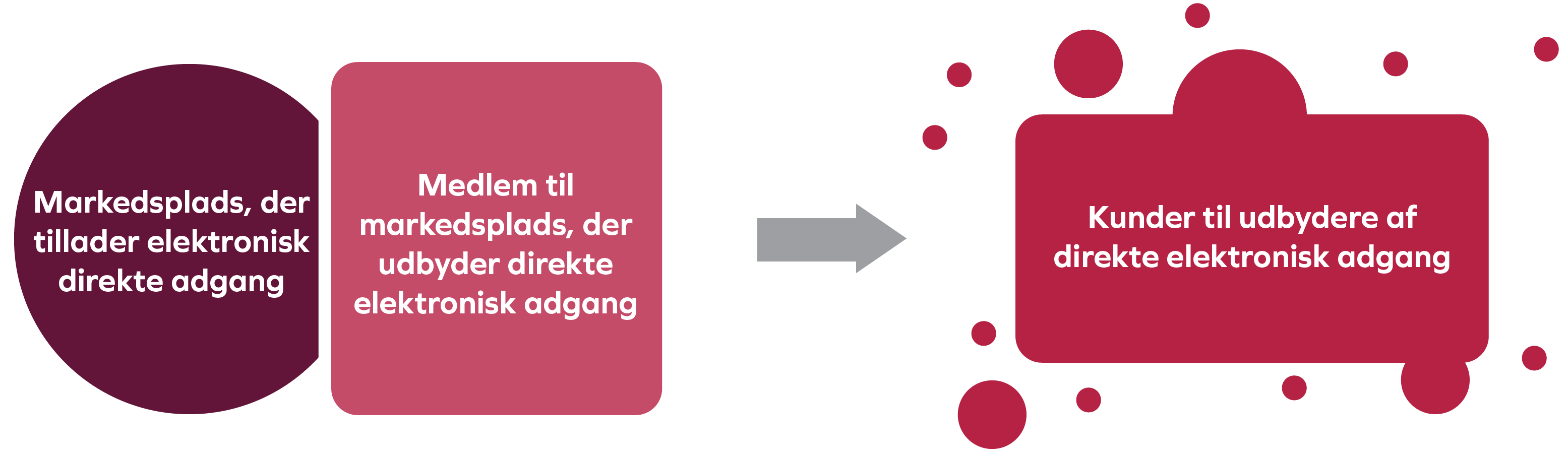 Kravene er uafhængige af, hvilken type af direkte elektronisk adgang markedspladsen tillader. En markedsplads der tillader sponsoreret adgang, skal dog være opmærksom på en række specifikke krav, der alene gælder, når der er tale om sponsoreret adgang.