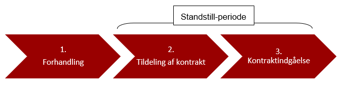 - Ved den offentlige ordregivers tildeling af kontrakten til den vindende tilbudsgiver er der en reel mulighed for, at begge parter underskriver kontrakten. Dog med det forbehold, at eventuelle klager indbringes i standstill-perioden og fører til et andet resultat. Finanstilsynet vurderer, at tildeling af en kontrakt udgør intern viden.
